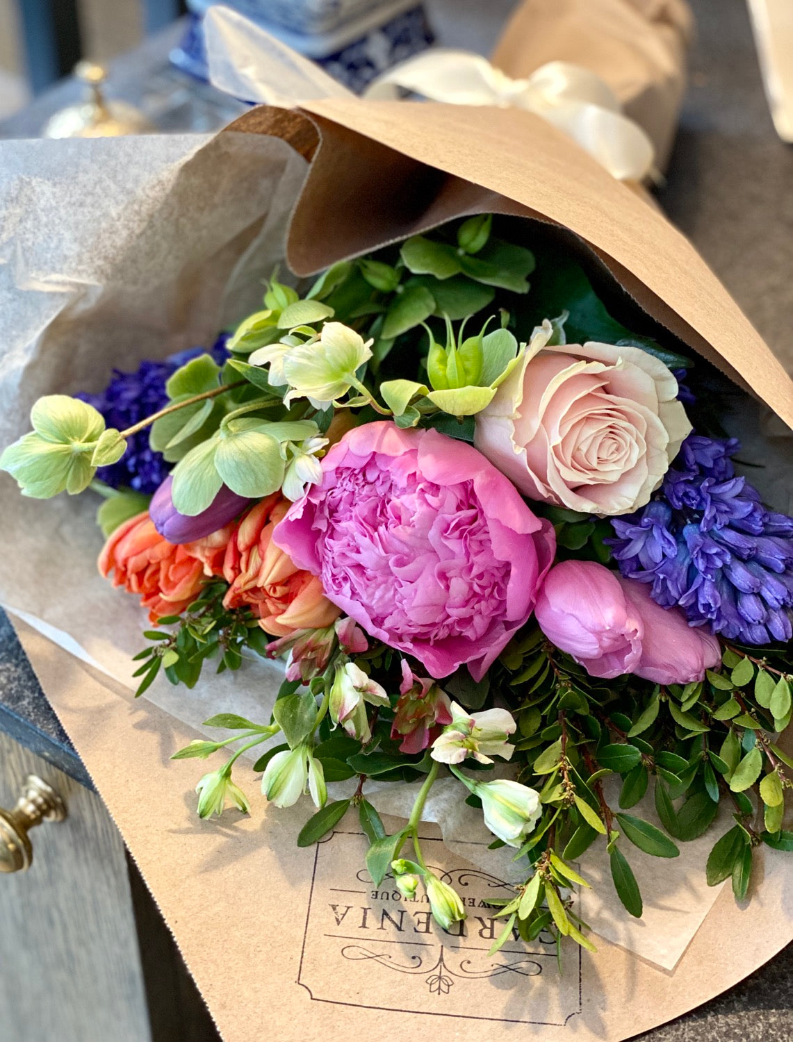 Our floral designers can combine your favourite flowers in a simple hand tied bouquet. You select the flowers and we make up a beautiful bouquet in just a few minutes. We will then elegantly wrap your flowers and tie them with a ribbon. We always have a great selection of fresh cut flower for you to choose from. Stop in the shop today or order online and have flowers delivered within Calgary.