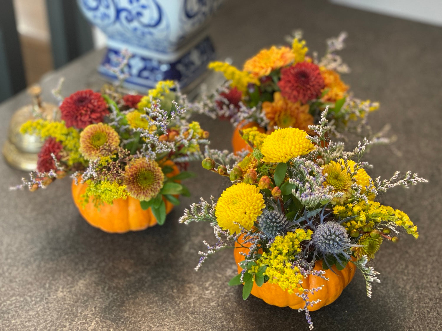 Perfect for your thanksgiving center piece. Make your home or office feel like a cozy fall day with this pumpkin arrangement.