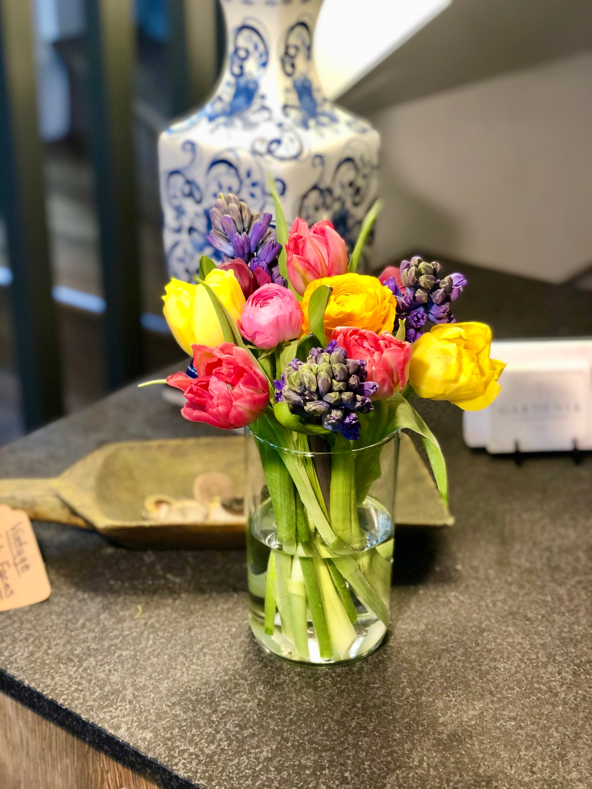 Looking for a little color and some beautiful spring flowers? This medium sized arrangement is a great option with a variety of bright colorful flowers.