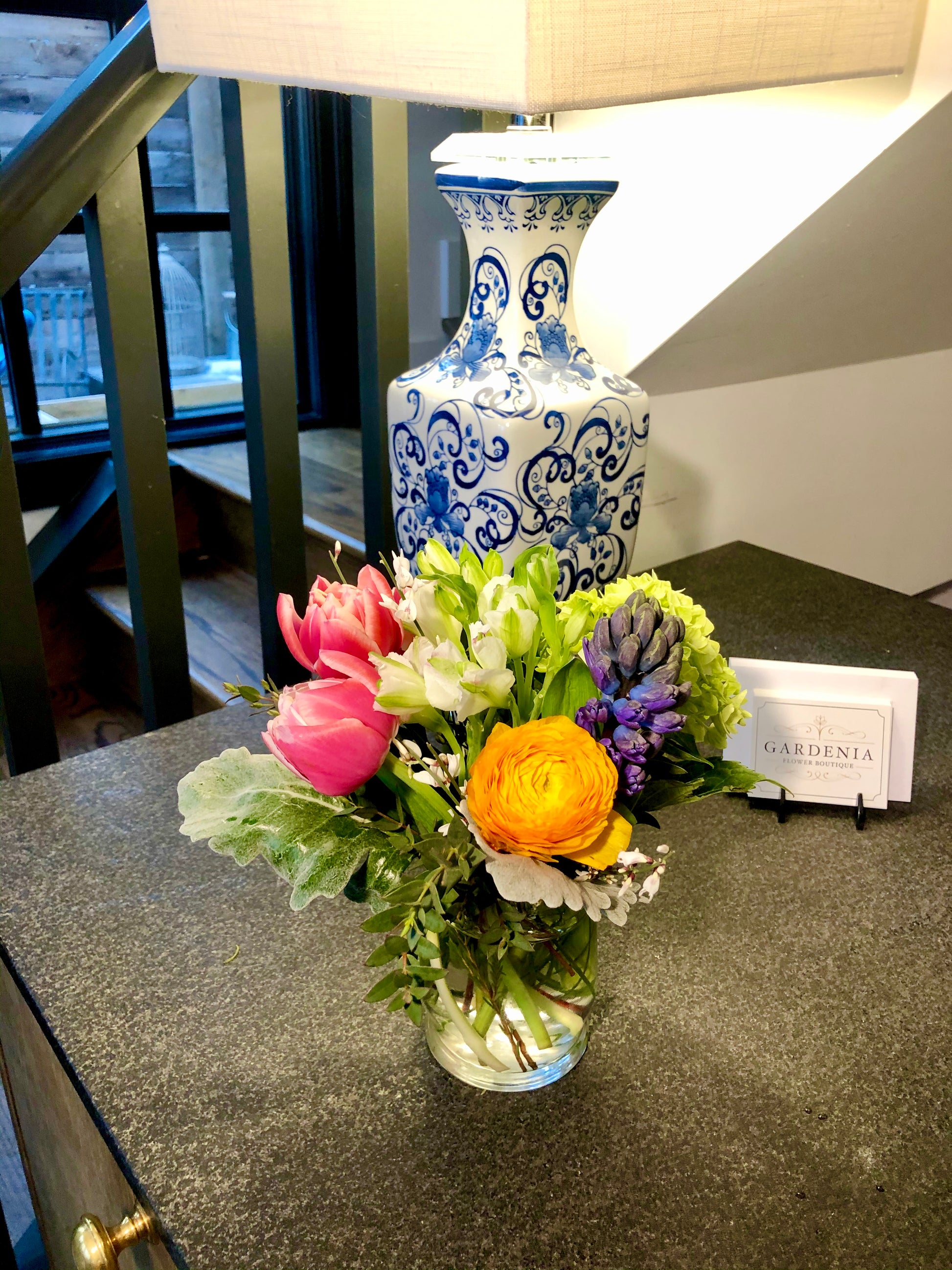 This medium sized arrangement is bright and cheerful with a mix of spring flowers. We will select a variety of colours and blooms depending on what is currently in stock.